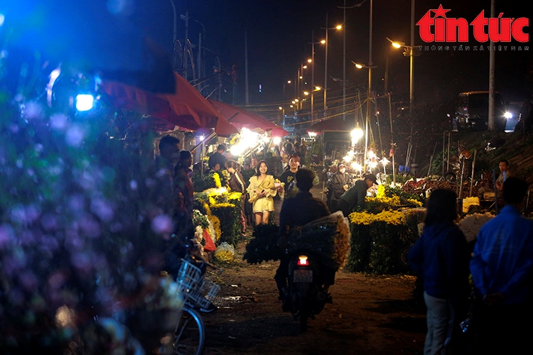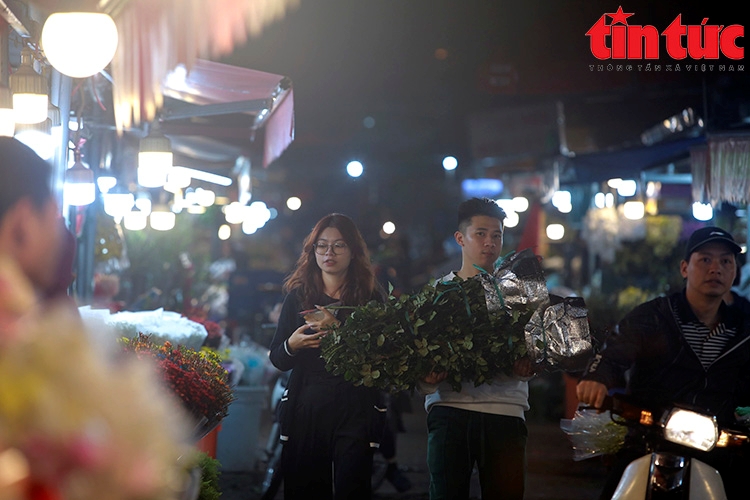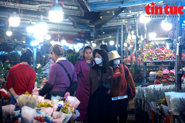 Càng về đêm muộn, chợ hoa càng tấp nập. Ghi nhận vào 1 giờ sáng ngày 14/2, tại chợ hoa, nhiều bạn trẻ vẫn đổ về mải mê chọn lựa hoa.