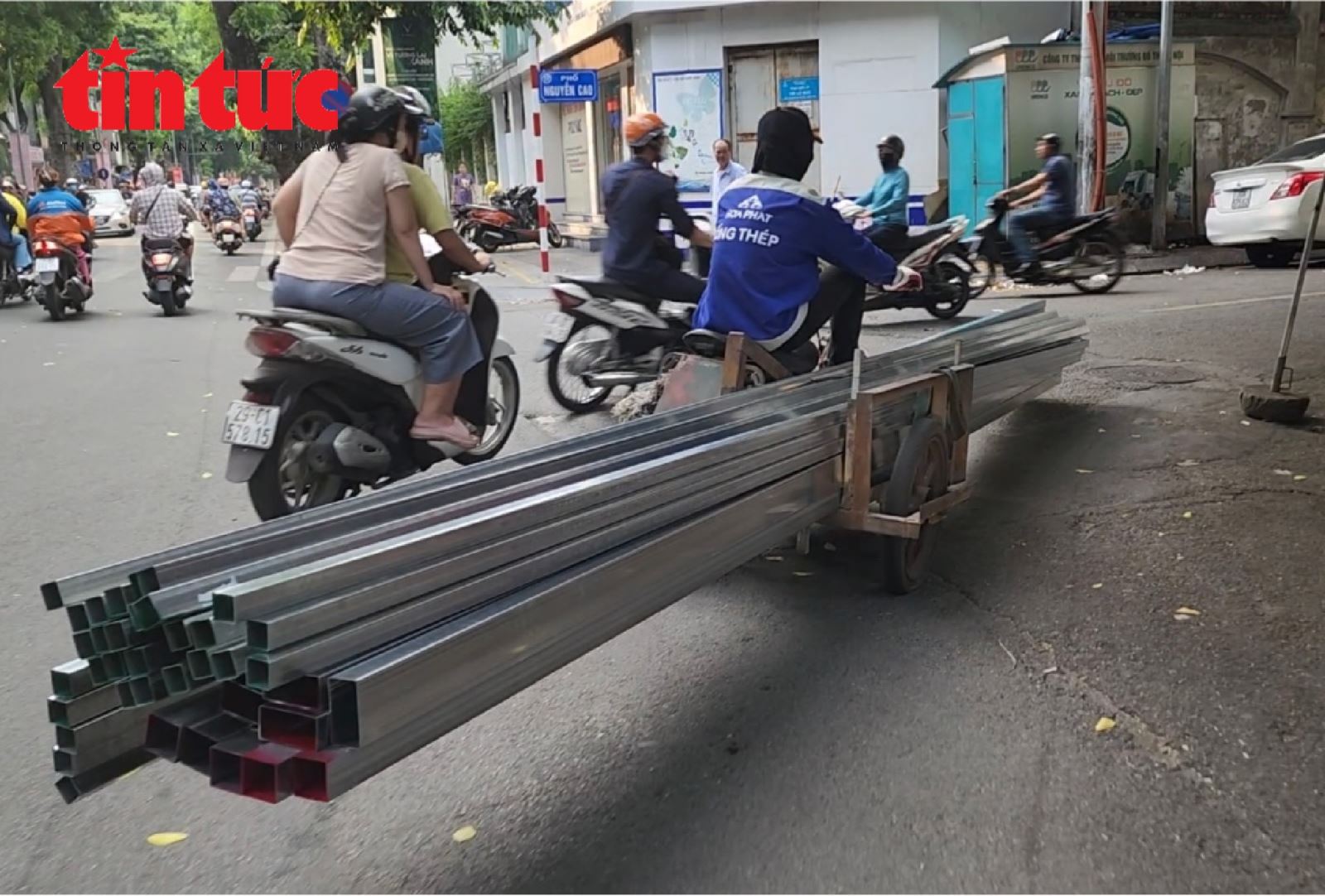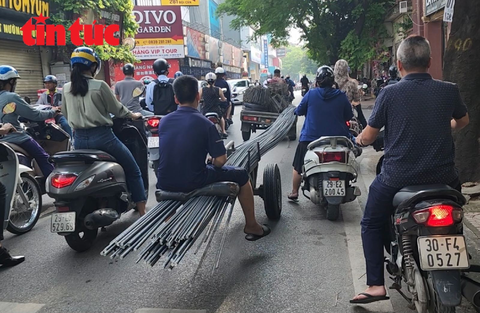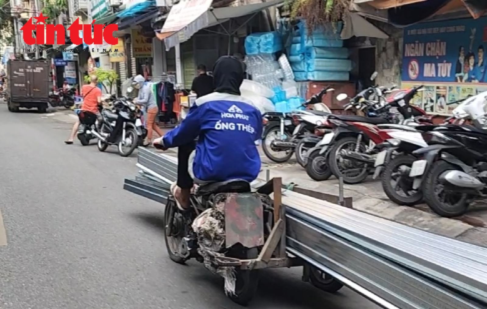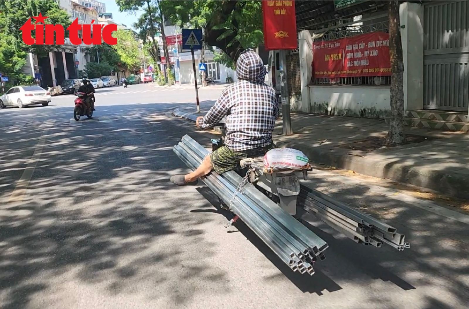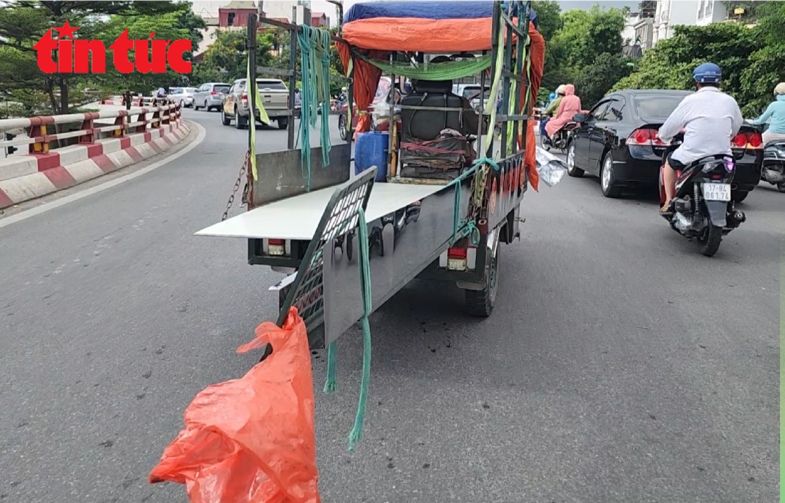 Dịp cuối năm, nhu cầu vận chuyển hàng hóa tăng cao, đường phố Hà Nội lại tái diễn tình trạng những chiếc xe máy "cũ nát" kéo xe thùng tự chế, xe 3 bánh thương binh... chở hàng hóa cồng kềnh, nguy hiểm, luồn lách trên phố, phóng nhanh vượt ẩu, luôn tiềm ẩn nguy cơ gây mất an toàn giao thông cho người và phương tiện khác.
