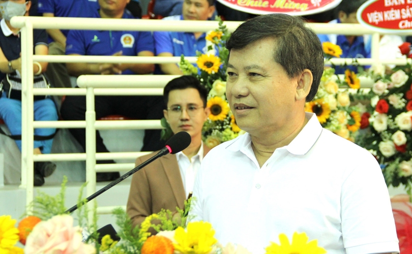 Đồng chí Lê Minh Trí, Ủy viên Trung ương Đảng Bí thư ban cán sự Đảng, Viện trưởng Viện kiểm sát nhân dân tối cao dự và phát biểu khai mạc Hội thao.