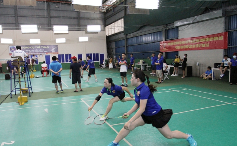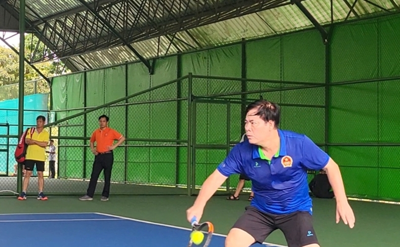 Đồng chí Nguyễn Quang Dũng, Phó Viện trưởng VKSND tối cao tham gia tranh tài môn Quần vợt.