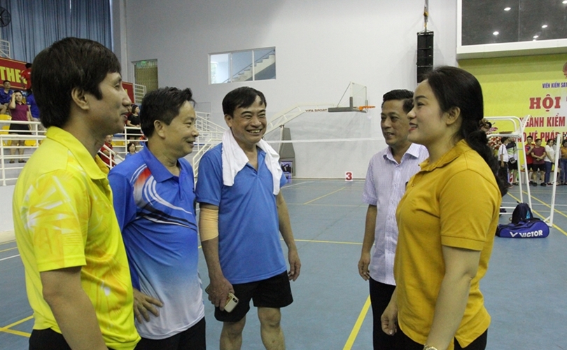 Đồng chí Nguyễn Hải Trâm, Phó bí thư Đảng ủy, Phó Viện trưởng Viện kiểm sát nhân dân tối cao thăm hỏi, động viên các vận động viên thi đấu.