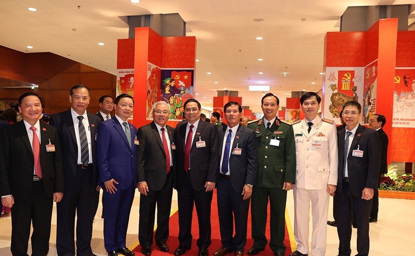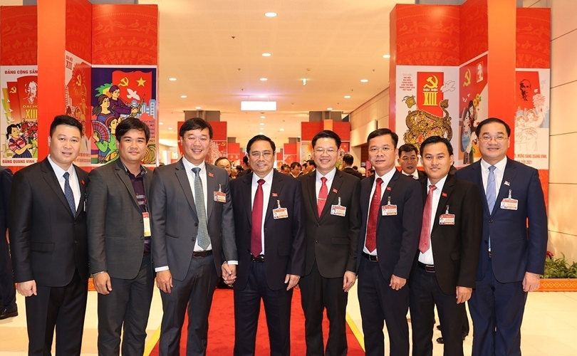 Ông Phạm Minh Chính, Ủy viên Bộ Chính trị, Bí thư Trung ương Đảng, Trưởng ban Tổ chức Trung ương với các đại biểu tại Đại hội. (Nguồn: TTXVN)