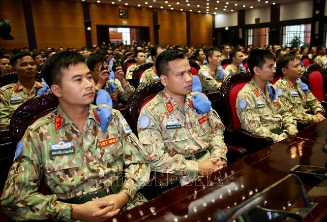 Thượng tướng Nguyễn Chí Vịnh, Thứ trưởng Bộ Quốc phòng, Tổ trưởng Tổ công tác liên ngành, Trưởng Ban Chỉ đạo Bộ Quốc phòng về tham gia hoạt động Gìn giữ hoà bình Liên hợp quốc giao nhiệm vụ cho Bệnh viện dã chiến cấp 2 số 2.