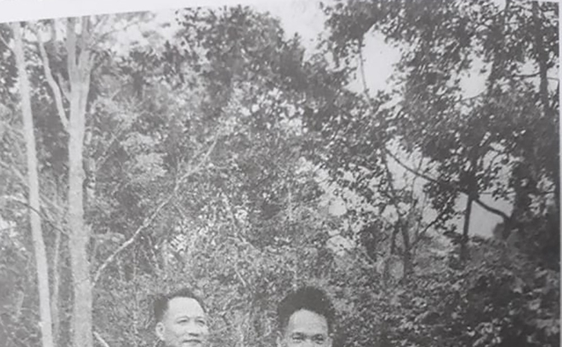 Trung tướng Trần Văn Trà - Tư lệnh Bộ Chỉ huy miền và Tham mưu trưởng Lê Đức Anh trên đường đi công tác tại chiến khu D, năm 1971