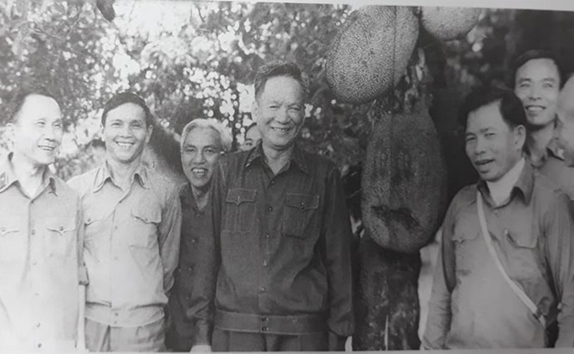 Trung tướng Lê Đức Anh - Tư lệnh Quân khu 9, nguyên Phó Tư lệnh chiến dịch Hồ Chí Minh (ngoài cùng bên phải hàng đứng) - chụp ảnh cùng với các đồng chí Lê Duẩn, Lê Đức Thọ, Văn Tiến Dũng... dự hội nghị tổng kết chiến dịch Hồ Chí Minh tại Đà Lạt, Lâm Đồng, cuối năm 1975