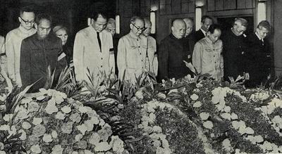 Tại Lễ truy điệu Chủ tịch Hồ Chí Minh ngày 9.9.1969, Bí thư thứ nhất Ban chấp hành Trung ương Đảng Lê Duẩn đọc Điếu văn của Ban Chấp hành Trung ương Đảng Lao động Việt Nam. Điếu văn có đoạn: “Dân tộc ta, nhân dân ta, non sông đất nước ta đã sinh ra Hồ Chủ tịch, người Anh hùng dân tộc vĩ đại, và chính Người đã làm rạng rỡ dân tộc ta, nhân dân ta và non sông đất nước ta”. Đồng thời, đồng chí Lê Duẩn đã đọc 5 lời thề vĩnh biệt Bác. Ảnh tư liệu