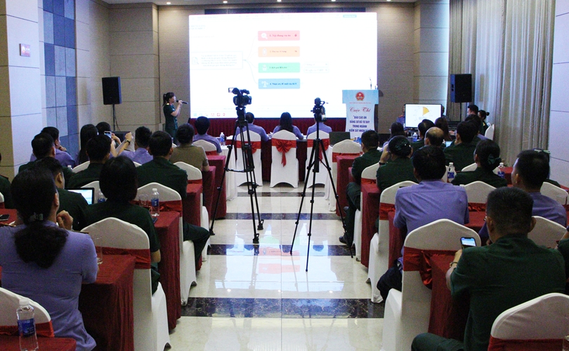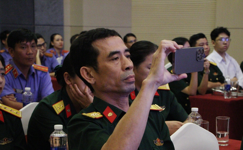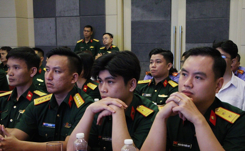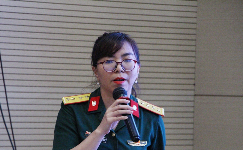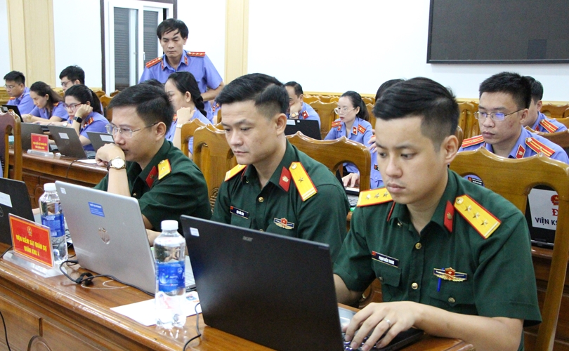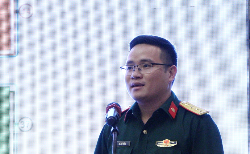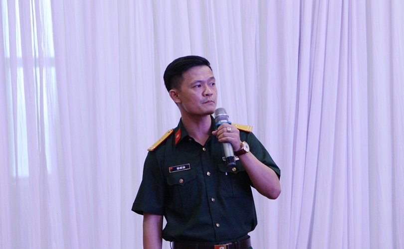 Đại diện đội VKS quân sự Quân khu 5 trình bày bài thuyết trình.
