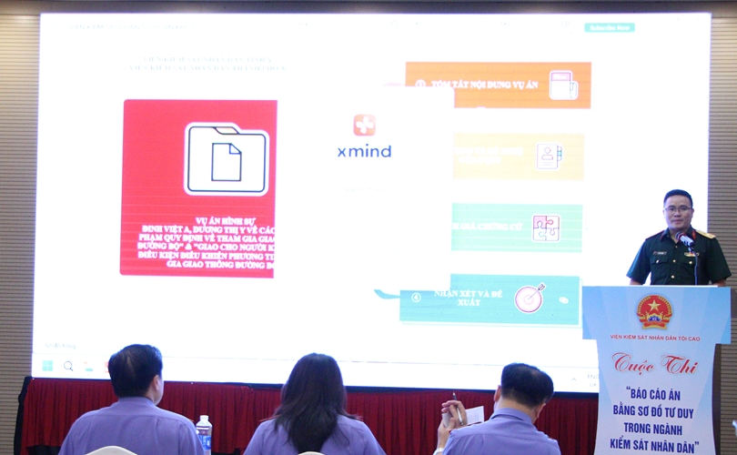 Đội VKS quân sự Quân khu 3 đã mang đến những bài thuyết trình ấn tượng, thể hiện sự sáng tạo trong việc áp dụng sơ đồ tư duy vào báo cáo án.