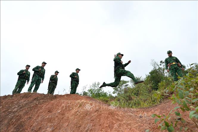 Các chiến sĩ Đồn Biên phòng Pa Thơm tuần tra để đảm bảo an ninh vững chắc đường biên, mốc giới của Tổ quốc.