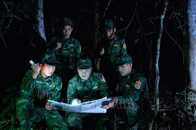 Các chiến sĩ Đồn Biên phòng Pa Thơm tuần tra đêm để đảm bảo an ninh vững chắc đường biên, mốc giới của Tổ quốc.