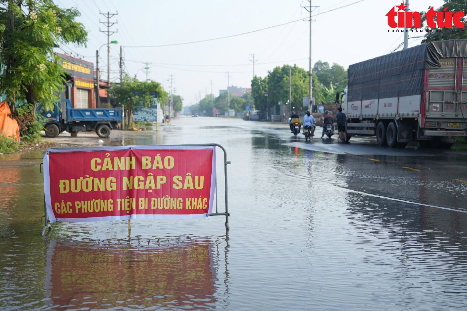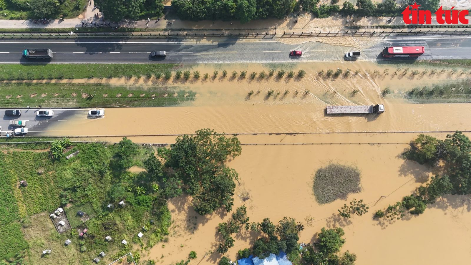 Một số đoạn quốc lộ chạy qua huyện Sóc Sơn (cũ) bị nước chia cắt, phương tiện giao thông gặp nhiều khó khăn khi di chuyển.