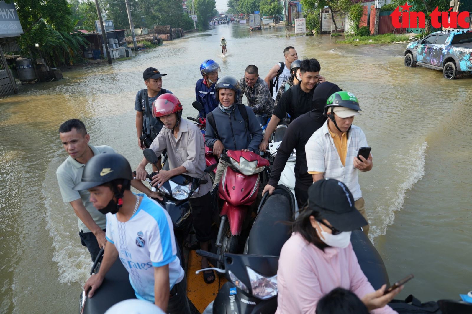 Sáng 10/10, lực lượng chức năng tập trung di dời người già, trẻ nhỏ ra khỏi vùng ngập lụt tại xã Trung Giã, còn thanh niên ở lại trông nhà.