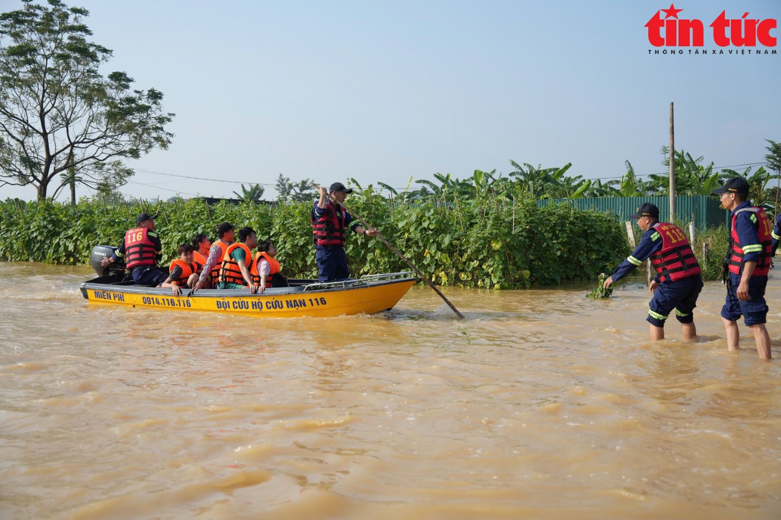 Nước lũ bủa vây, người dân nhiều làng, xã ở Thủ đô hối hả chạy lụt