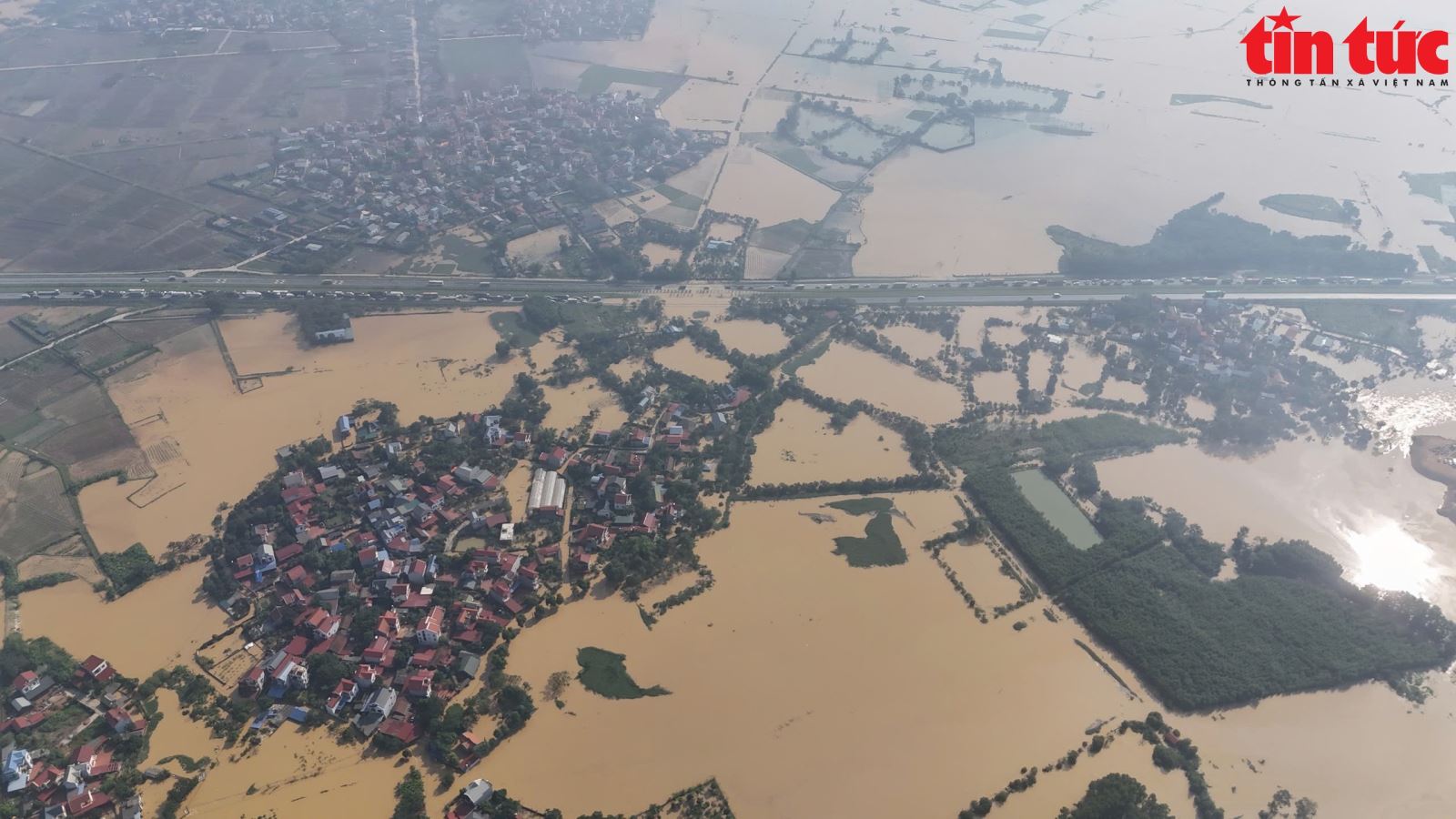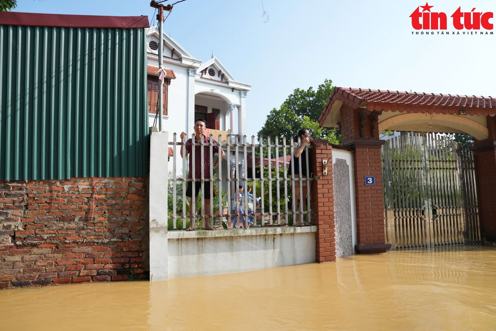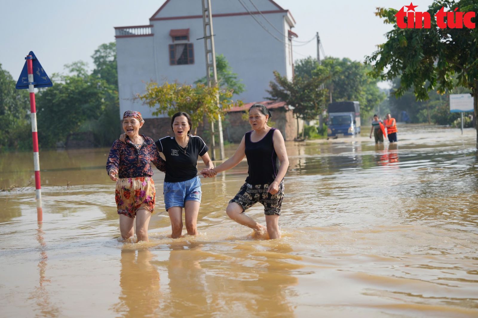 Ngày 10/10, nhiều làng, xã thuộc huyện Sóc Sơn cũ của Hà Nội vẫn chìm trong biển nước sau những trận mưa lớn những ngày qua. Nước nhấn chìm đường làng, ngõ xóm, nhiều hộ dân buộc phải di dời để đảm bảo an toàn tính mạng và tài sản.