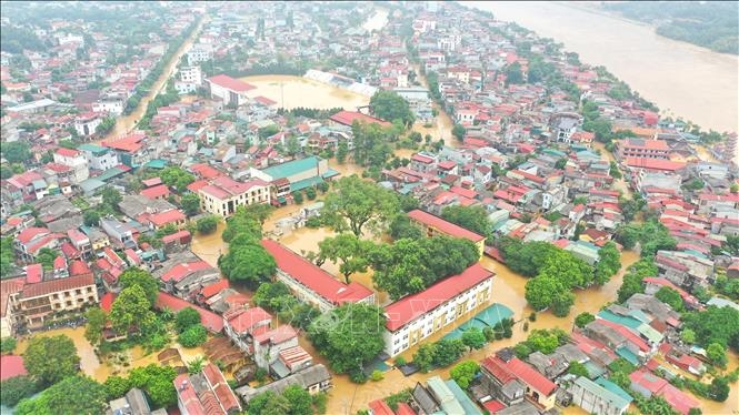 Nước sông Hồng lên cao, nhấn chìm các khu vực nằm ven sông ở thành phố Yên Bái.