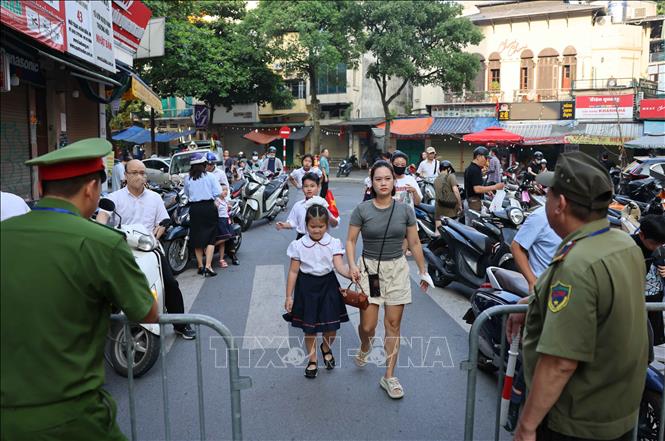 Sáng 5/9/2024, học sinh cả nước háo hức đến trường để tham dự ngày hội lớn – Lễ khai giảng năm học 2024 - 2025. Lực lượng chức năng thành phố Hà Nội thực hiện công tác phân luồng, đảm bảo giao thông trong ngày hội "Toàn dân đưa trẻ tới trường".