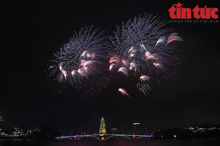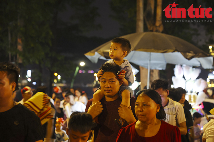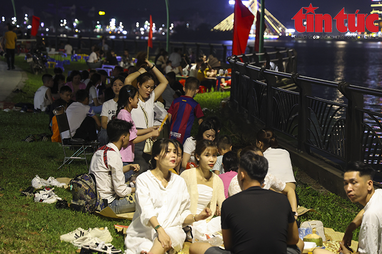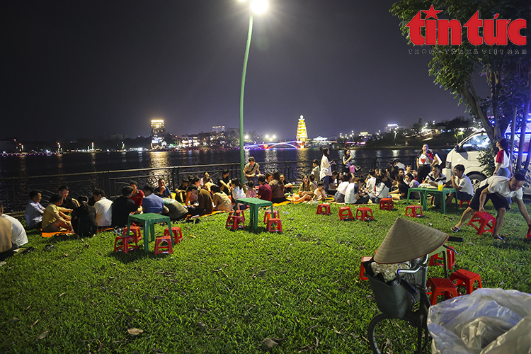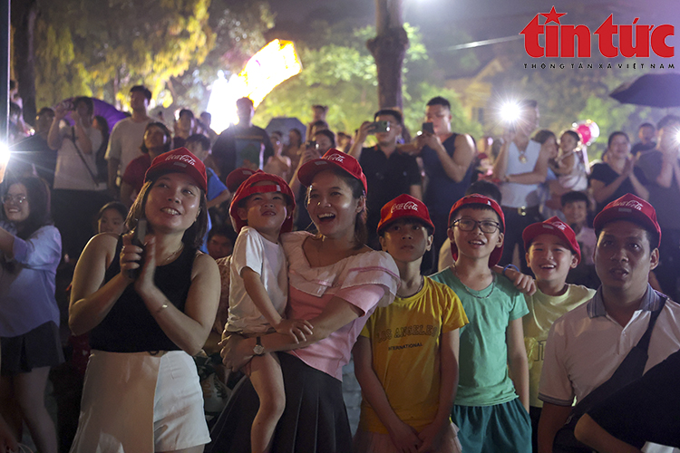 Tối 17/4, rất đông người dân, du khách thập phương có mặt tại các tuyến đường xung quanh công viên Văn Lang (thành phố Việt Trì, tỉnh Phú Thọ) chiêm ngưỡng màn bắn pháo hoa nhân dịp Giỗ Tổ Hùng Vương.