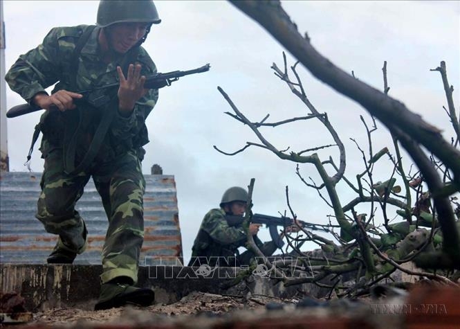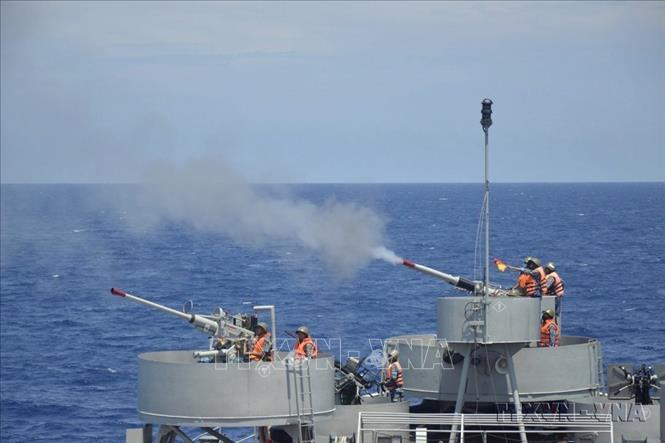 Hải quân nhân dân Việt Nam vượt qua mọi khó khăn, gian khổ, bình tĩnh, khôn khéo, kiên quyết, kiên trì, không để bị động, bất ngờ, giữ vững môi trường hòa bình, ổn định trên các vùng biển, đảo của Tổ quốc. Trong ảnh: Chiến sĩ đảo An Bang luyện tập sẵn sàng chiến đấu.