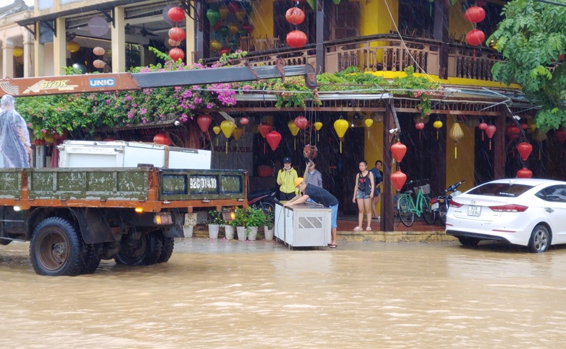 Nước sông dâng cao, người dân Hội An hối hả dọn đồ đạt chạy lũ.