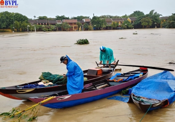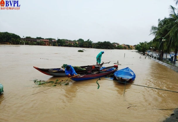 Lo sợ nước càng lúc càng dâng cao hơn, nhiều người dân ở phố cổ Hội An tranh thủ di chuyển thuyền, lên neo đậu ở nơi an toàn.
