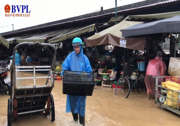 Đang tranh thủ dọn ba lô, áo quần, giày dép lên cao, anh Trương Ngọc Cảnh, Chủ tiệm bán ba lô trên đường Nguyễn Thái Học nói: “Như mọi năm nước sông Hoài lên báo động III lúc ấy tôi mới dọn đồ chạy lũ. Tuy nhiên mấy tháng qua dịch COVID-19 khiến việc mua bán ế ẩm, bây giờ đến lũ lụt. Sợ hư hỏng đồ đạc nên hai vợ chồng tôi dọn đưa lên tầng 2 cho yên tâm”.