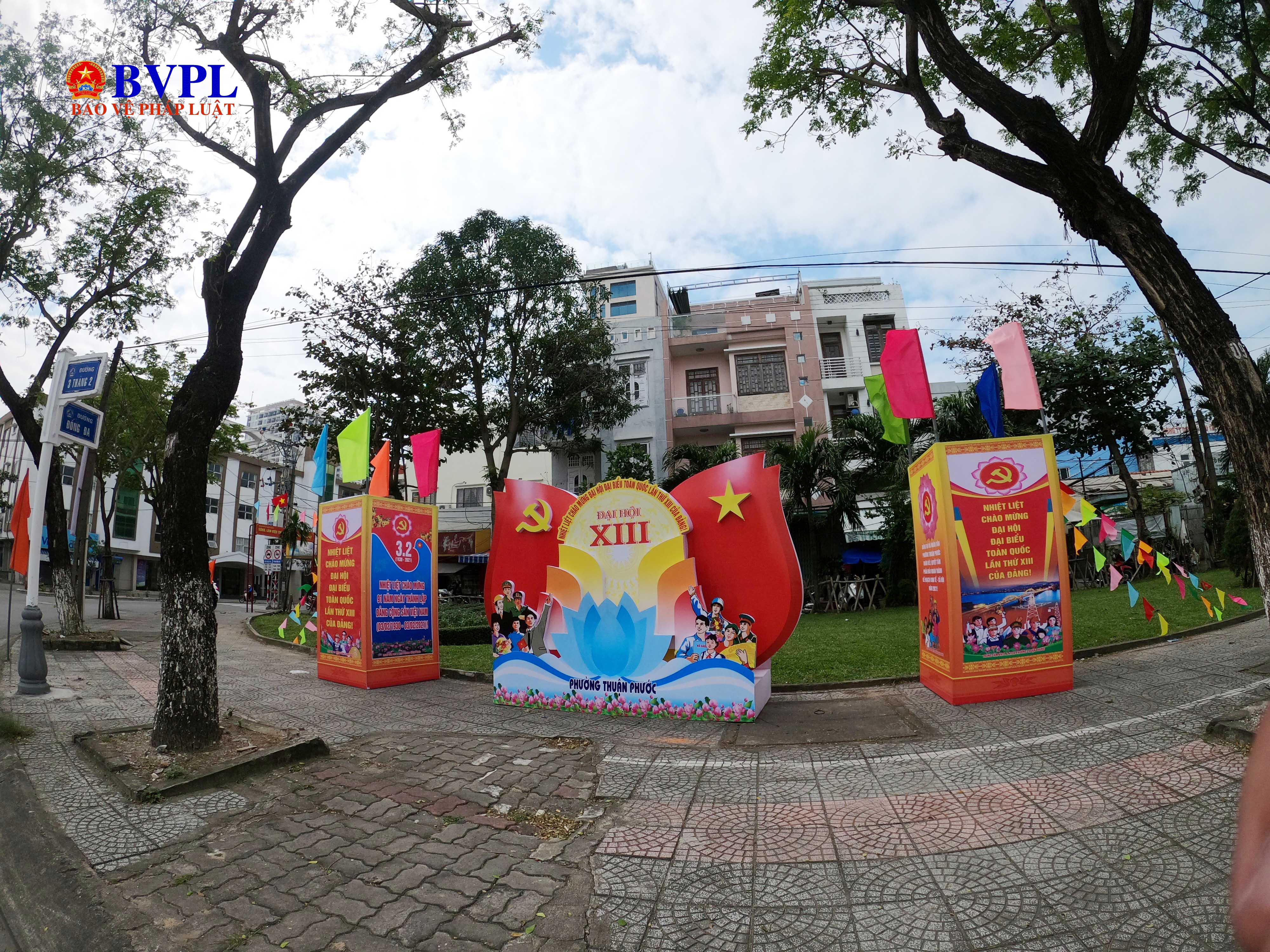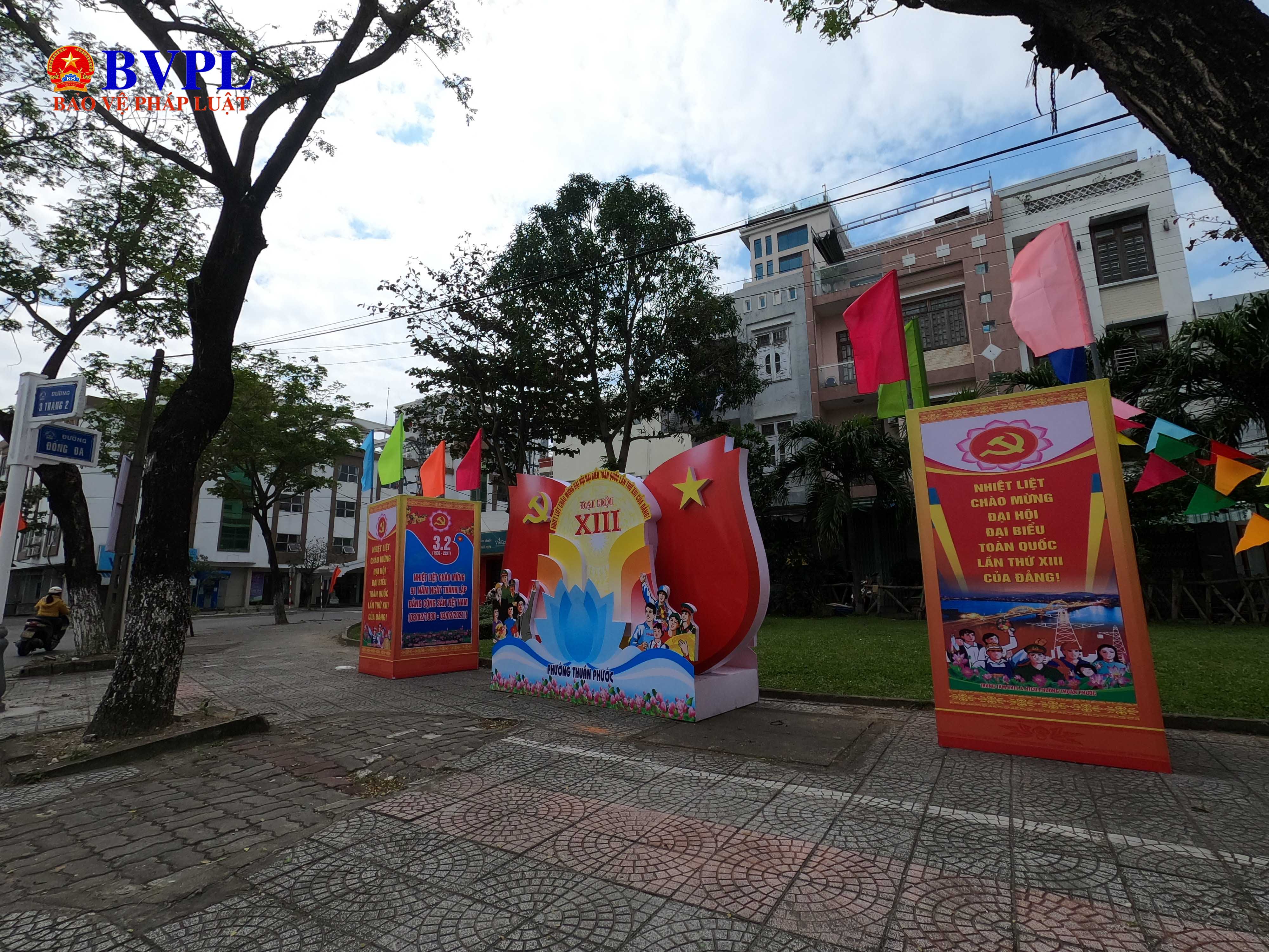 (BVPL) - Chào mừng Đại hội đại biểu toàn quốc lần thứ XIII của Đảng, phố phường Đà Nẵng những ngày này rực rỡ cờ đỏ sao vàng, áp phích, khẩu hiệu tạo không khí vui tươi, phấn khởI, thể hiện sự đồng lòng của Đảng bộ, chính quyền và nhân dân thành phố hướng về sự kiện trọng đại của đất nước.