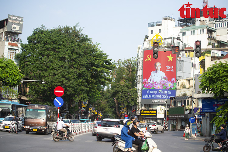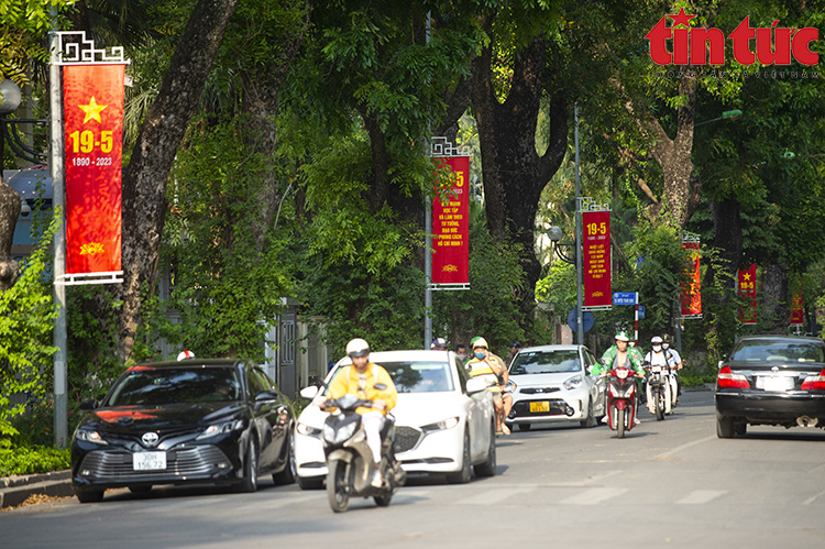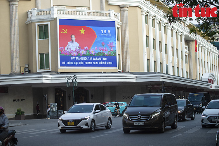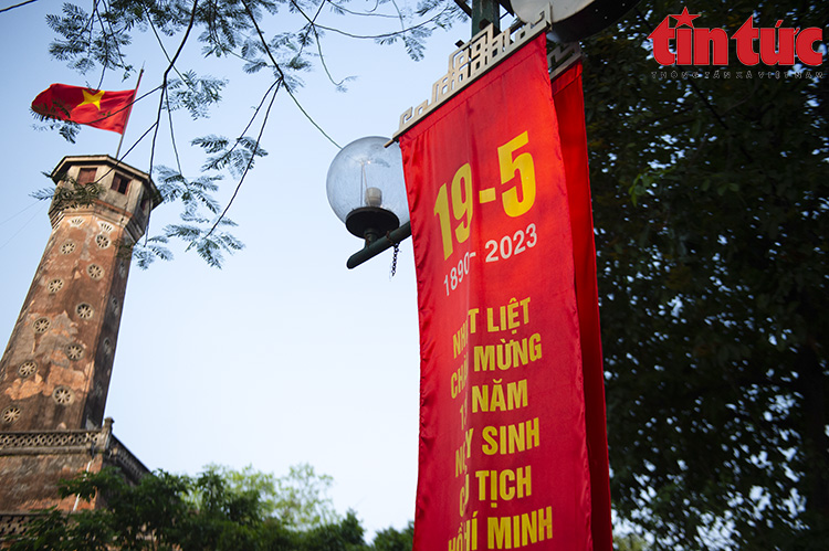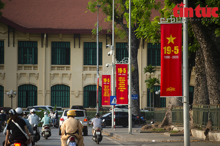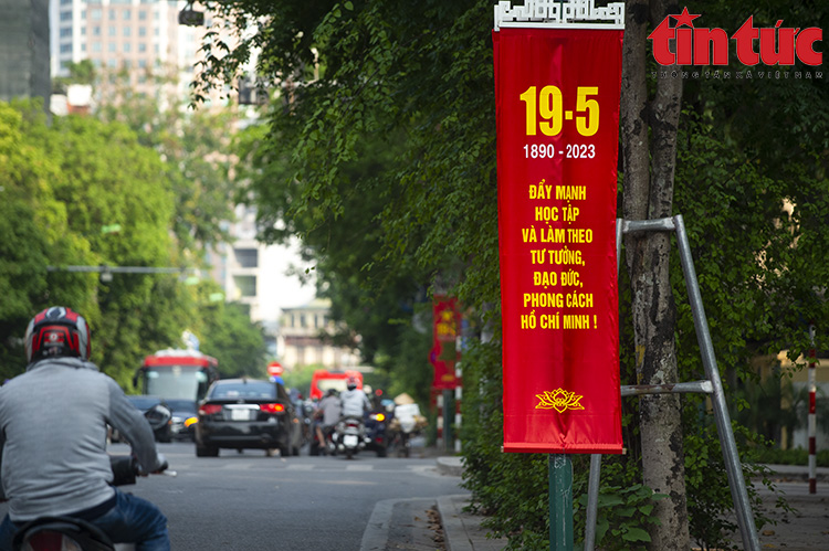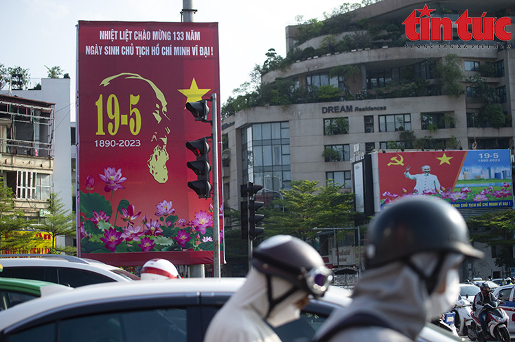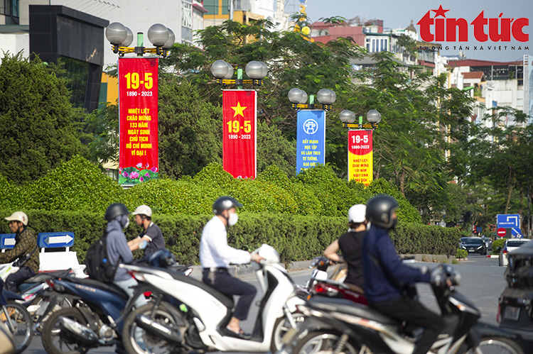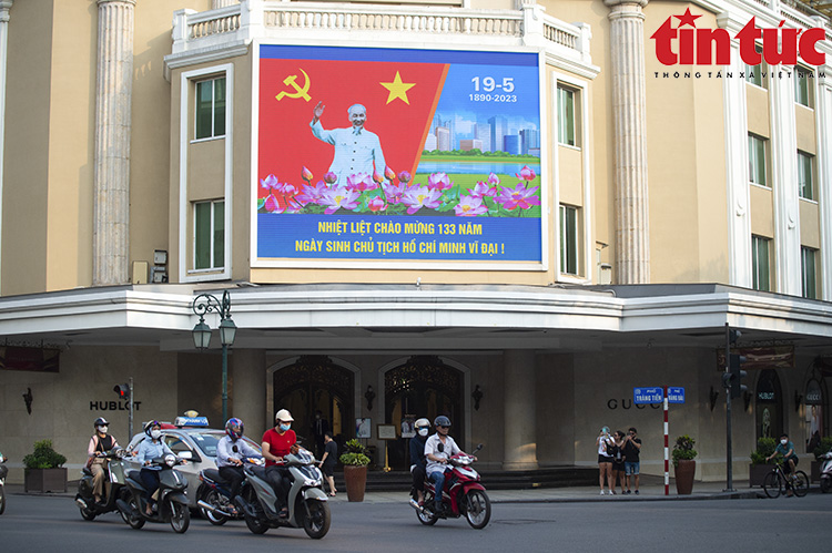 Những ngày tháng năm này, đường phố Hà Nội được trang hoàng rực rỡ cờ, hoa, băng rôn, pa nô, khẩu hiệu mừng kỷ niệm 133 năm ngày sinh Chủ tịch Hồ Chí Minh (19/5/1890-19/5/2023).
