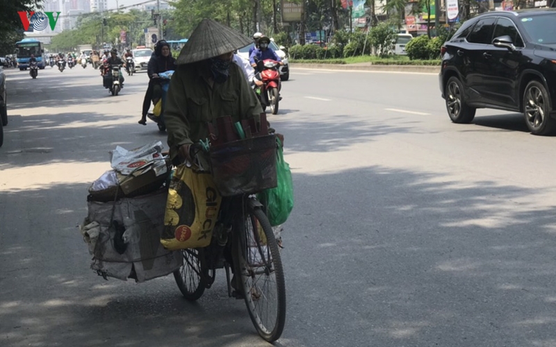 Những người thu mua phế liệu đội nắng mưu sinh trên đường phố Hà Nội.