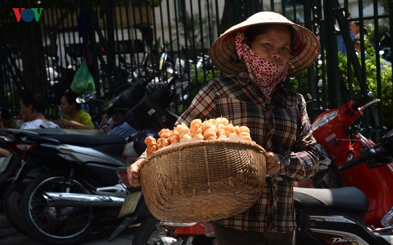 Những gánh hàng ăn vẫn đông khách giữa trưa nắng.