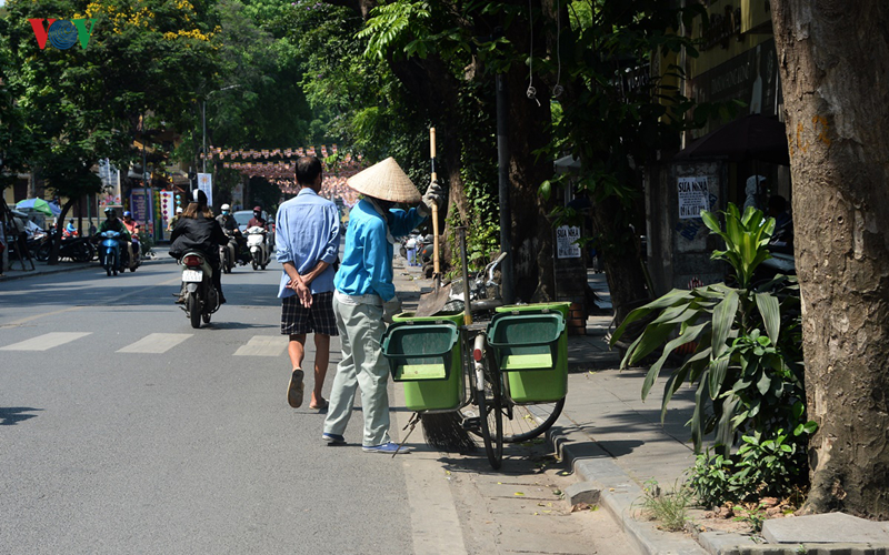 Giữa trưa nắng, những công nhân vệ sinh môi trường vẫn tất bật làm việc.