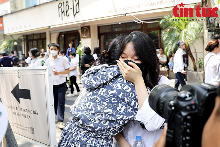 Những cái ôm động viên tinh thần của các phụ huynh dành cho sĩ tử.