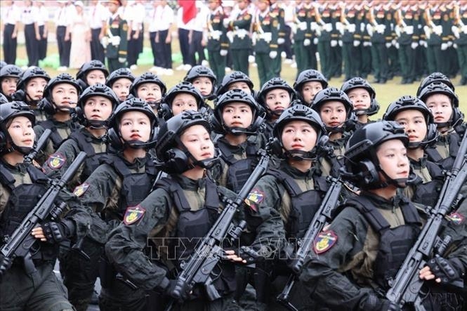 Nữ chiến sĩ Cảnh sát đặc nhiệm tham gia diễu binh tại Lễ kỷ niệm 70 năm Chiến thắng lịch sử Điện Biên Phủ (7/5/1954 - 7/5/2024).