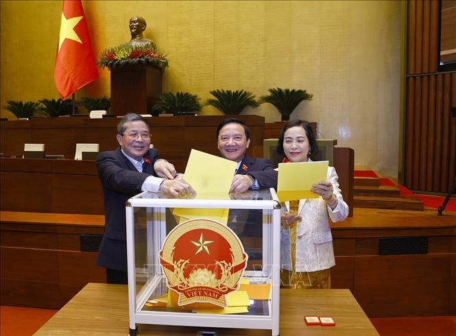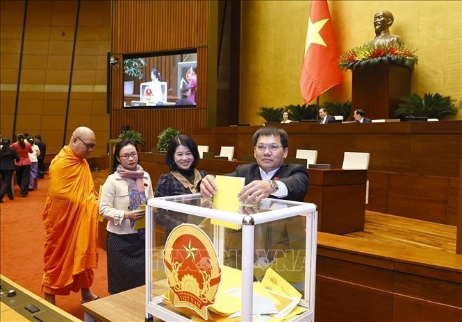 Các Phó Chủ tịch Quốc hội bỏ phiếu bầu Phó Chủ tịch Quốc hội và Ủy viên Ủy ban Thường vụ Quốc hội; Phê chuẩn đề nghị của Thủ tướng Chính phủ về việc bổ nhiệm các Phó Thủ tướng Chính phủ, Bộ trưởng và thành viên khác của Chính phủ nhiệm kỳ 2021-2026. Ảnh: Doãn Tấn/TTXVN
