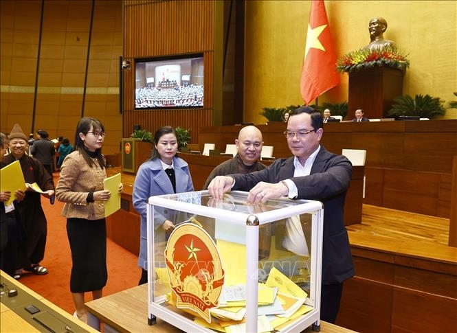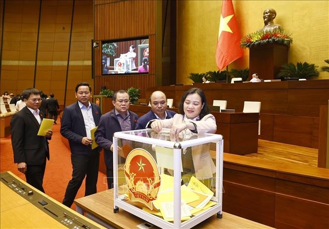 Đại biểu bỏ phiếu bầu thành viên Chính phủ, thành viên Quốc hội. Ảnh: Doãn Tấn/TTXVN