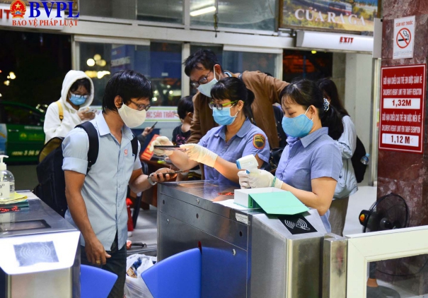 Tại khu vực ga đến và khu soát vé có bố trí đầy đủ nước rửa tay sát khuẩn cho hành khách. Lực lượng làm nhiệm vụ đến từ Công an thành phố, Sở Ngoại vụ, Công an quận Thanh Khê, Trung tâm Y tế quận Thanh Khê… được trang bị đồ bảo hộ, dụng cụ đo thân nhiệt và chia ca túc trực 24/24.