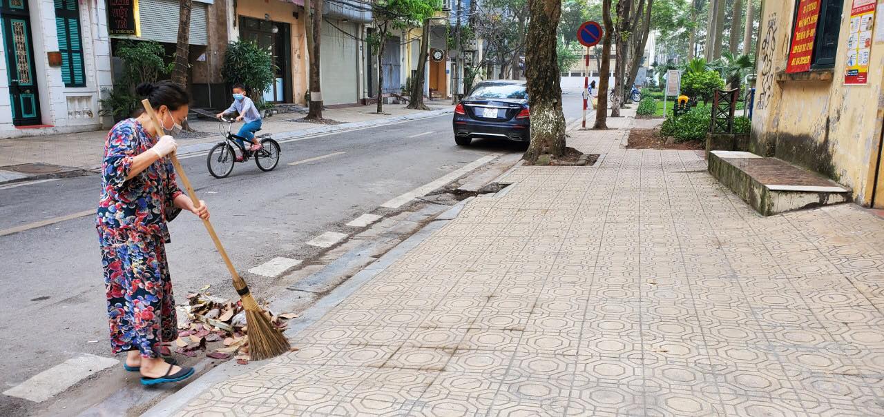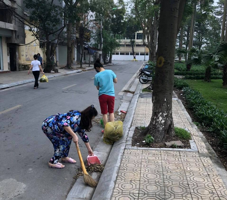 Các hộ dân làm vệ sinh vỉa hè, lòng đường nghiêm túc.