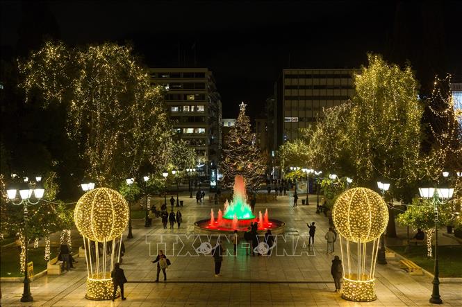 Quảng trường Syntagma tại Athens, Hy Lạp, được trang hoàng rực rỡ đón Giáng sinh, ngày 14/12/2020. Ảnh: THX/TTXVN