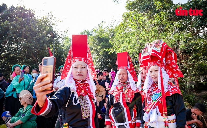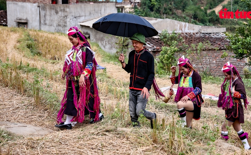 Hình ảnh tái hiện lễ cưới, với trang phục rực rỡ của cô dâu, chú rể dân tộc Dao Thanh Phán thu hút sự quan tâm của du khách.