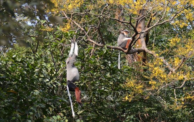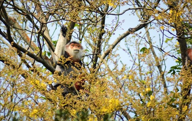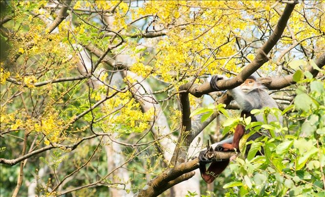 Những bông hoa Lim xẹt là món ăn ưa thích của loài Voọc Chà vá chân nâu.