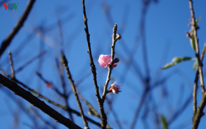 Hoa đào nở sớm giữa tiết Đông.