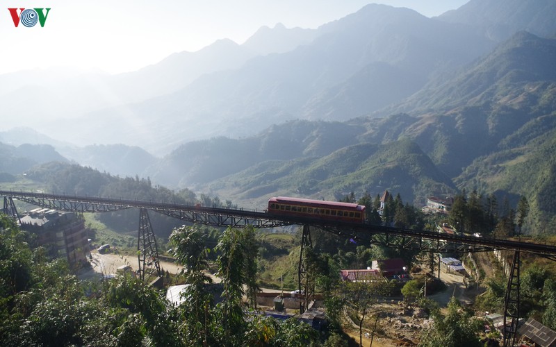 Đoàn tàu đưa du khách tới trạm cáp treo lên Fansipan hay những công trình đang xây ngổn ngang bên dưới đường ray không thể đánh bại được vẻ đẹp thiên nhiên hùng vĩ của Sapa.