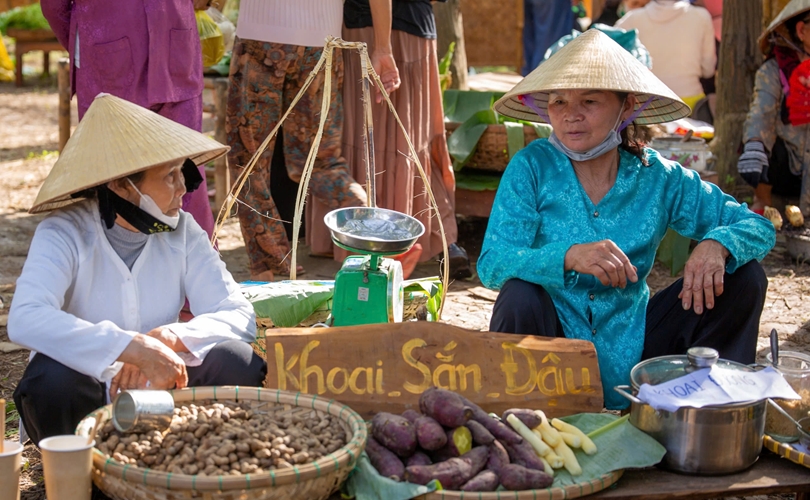 Mua sắm nông sản quê và sản phẩm thủ công mỹ nghệ – tất cả đều do chính tay các nghệ nhân và nông dân bản địa tạo nên, mang đậm hồn quê.