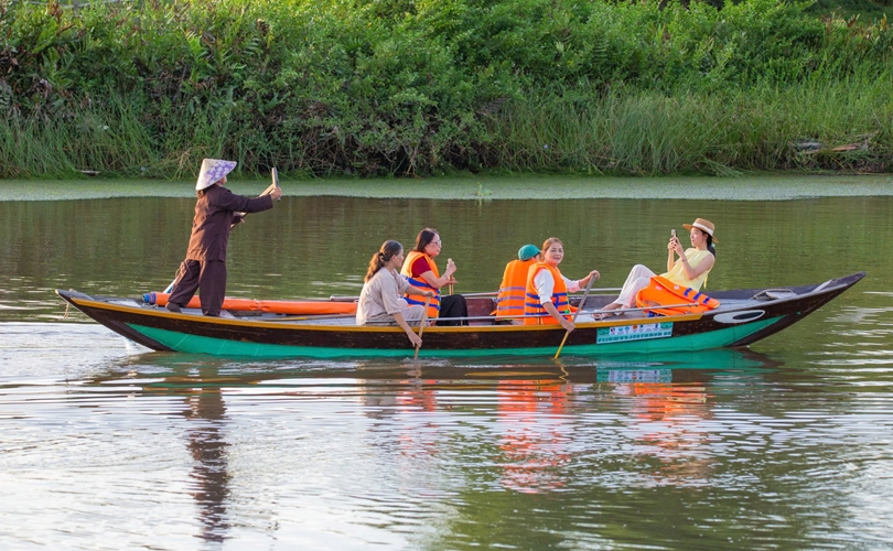 Thưởng ngoạn sông nước bằng những chuyến bơi ghe dọc sông Thu Bồn – một trải nghiệm khó quên, nơi du khách có thể lắng nghe tiếng gõ nhịp lưới bén, tiếng sóng ru bờ lát và hòa vào nhịp hò khoan đối đáp – âm thanh của làng chài xưa vọng về.