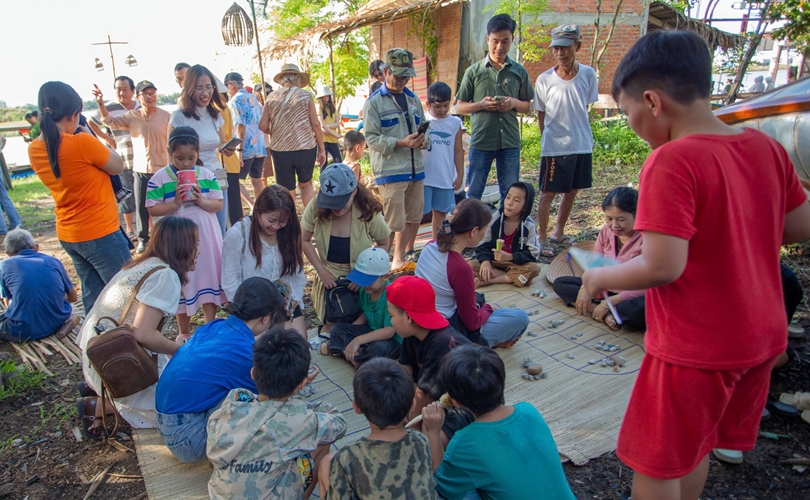 Nhiều bạn trẻ lại thích trải nghiệm các trò chơi dân gian như: bài chòi, lô tô, bịt mắt đập nồi, đổ tam hường, nhảy dây… Ở đây còn có không gian dành cho những người yêu thích nghe nhạc đồng quê.