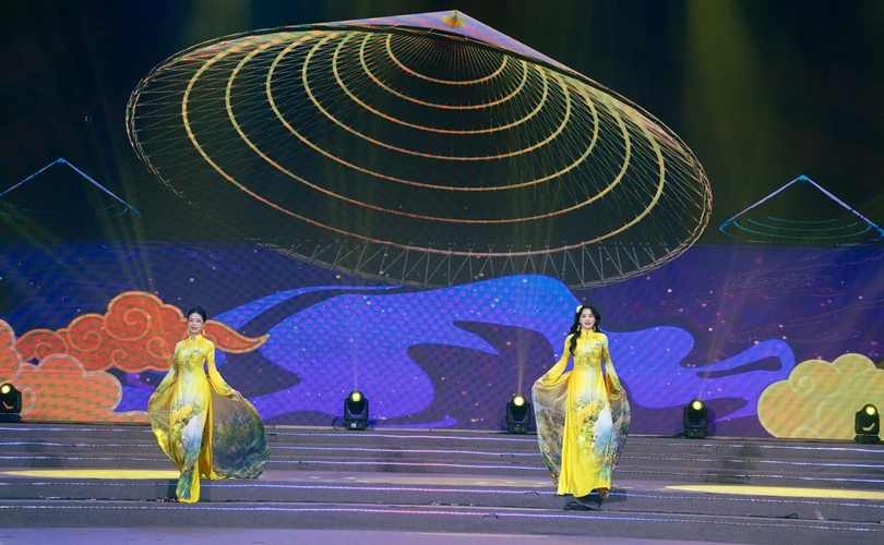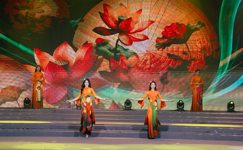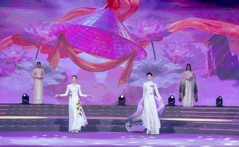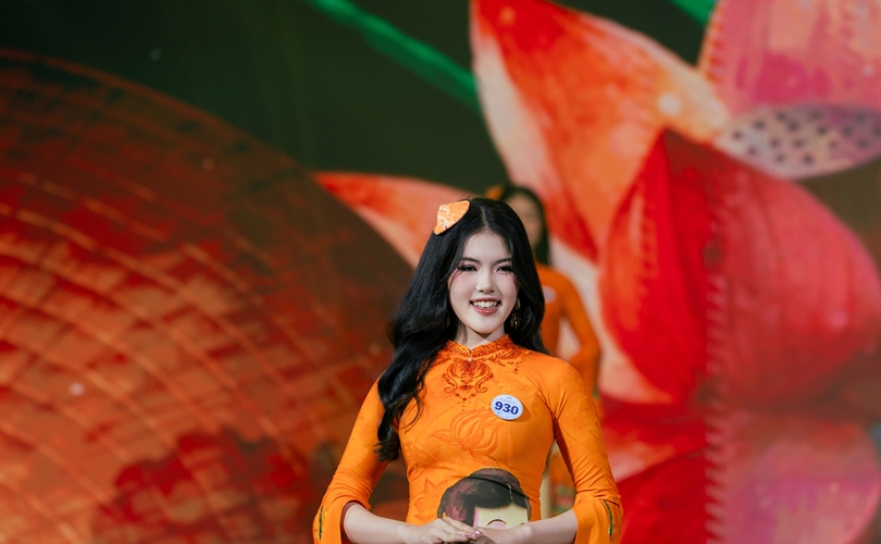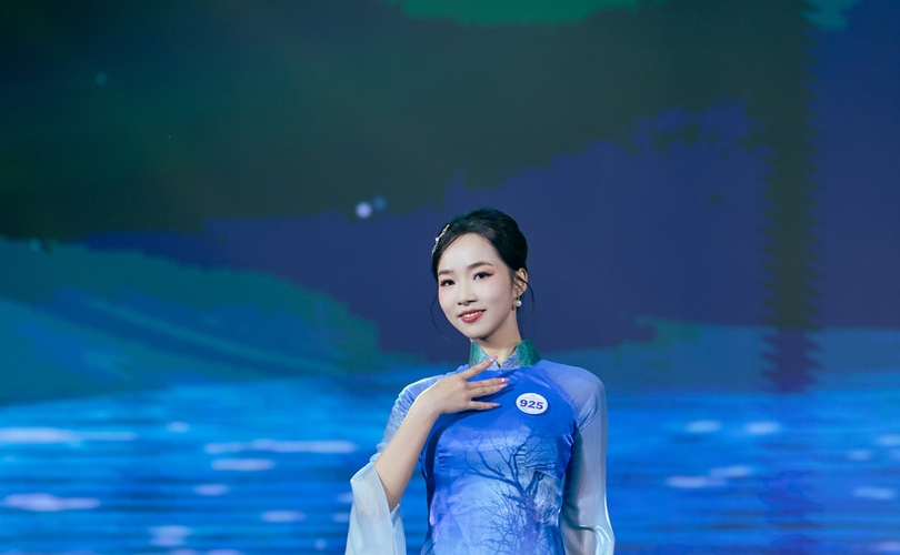 Các thí sinh tại phần thi trình diễn áo dài truyền thống.