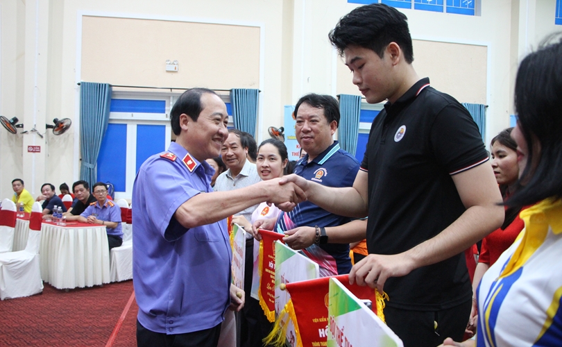 Lãnh đạo VKSND TP Đà Nẵng trao cờ lưu niệm cho các đơn vị tham gia hội thao.