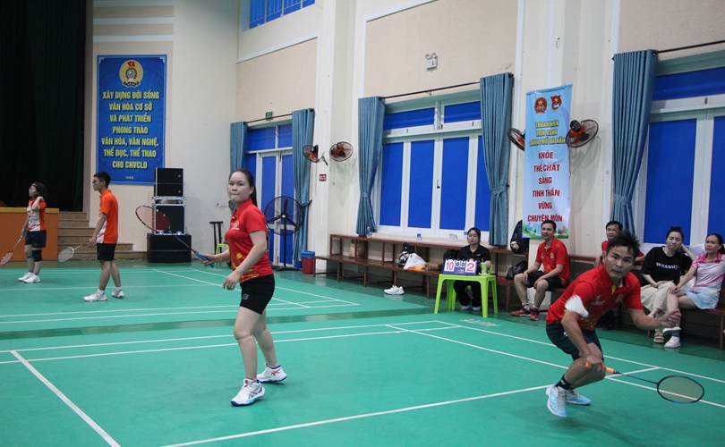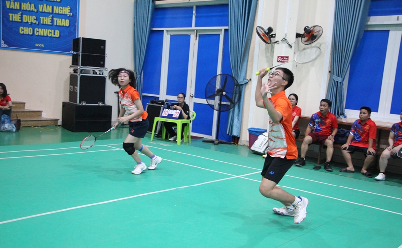 Nội dung thi đấu đôi nam nữ môn cầu lông.
