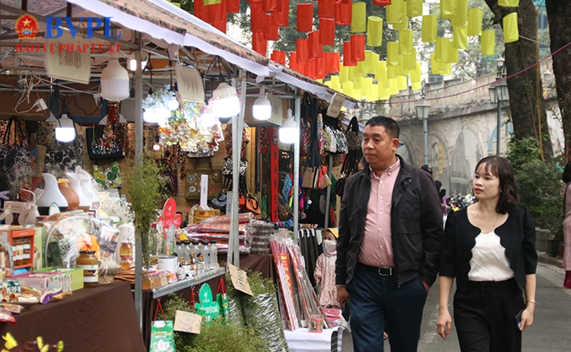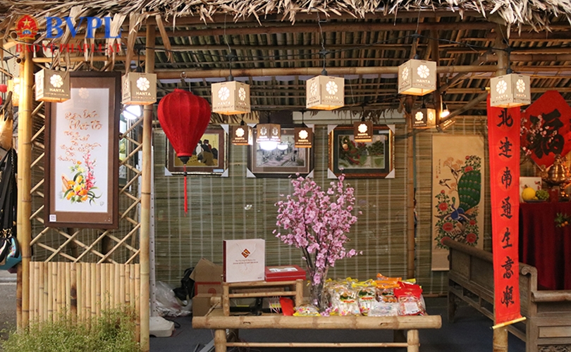 Các gian hàng được trang trí, bày bán với nhiều sản phâm mang "hơi thở" của Tết Việt.