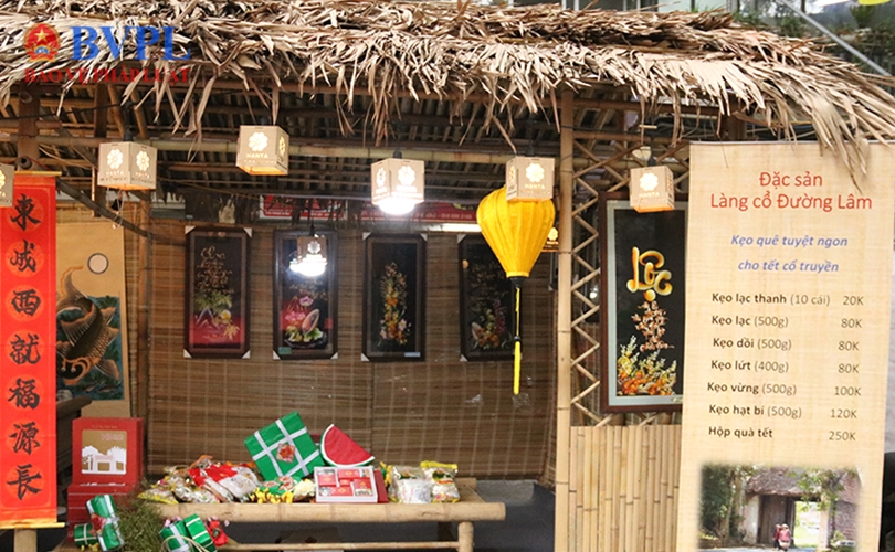 Gian hàng với những đặc sản của Làng cổ Đường Lâm.