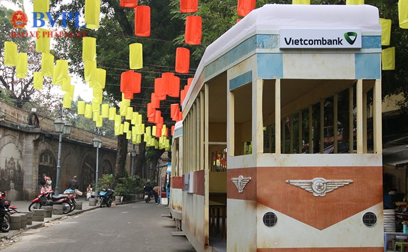 Điểm nhấn của dự án là hệ thống cổng tam quan với họa tiết tranh dân gian, toa tàu điện cũ Hà Nội và không gian chợ hoa truyền thống.